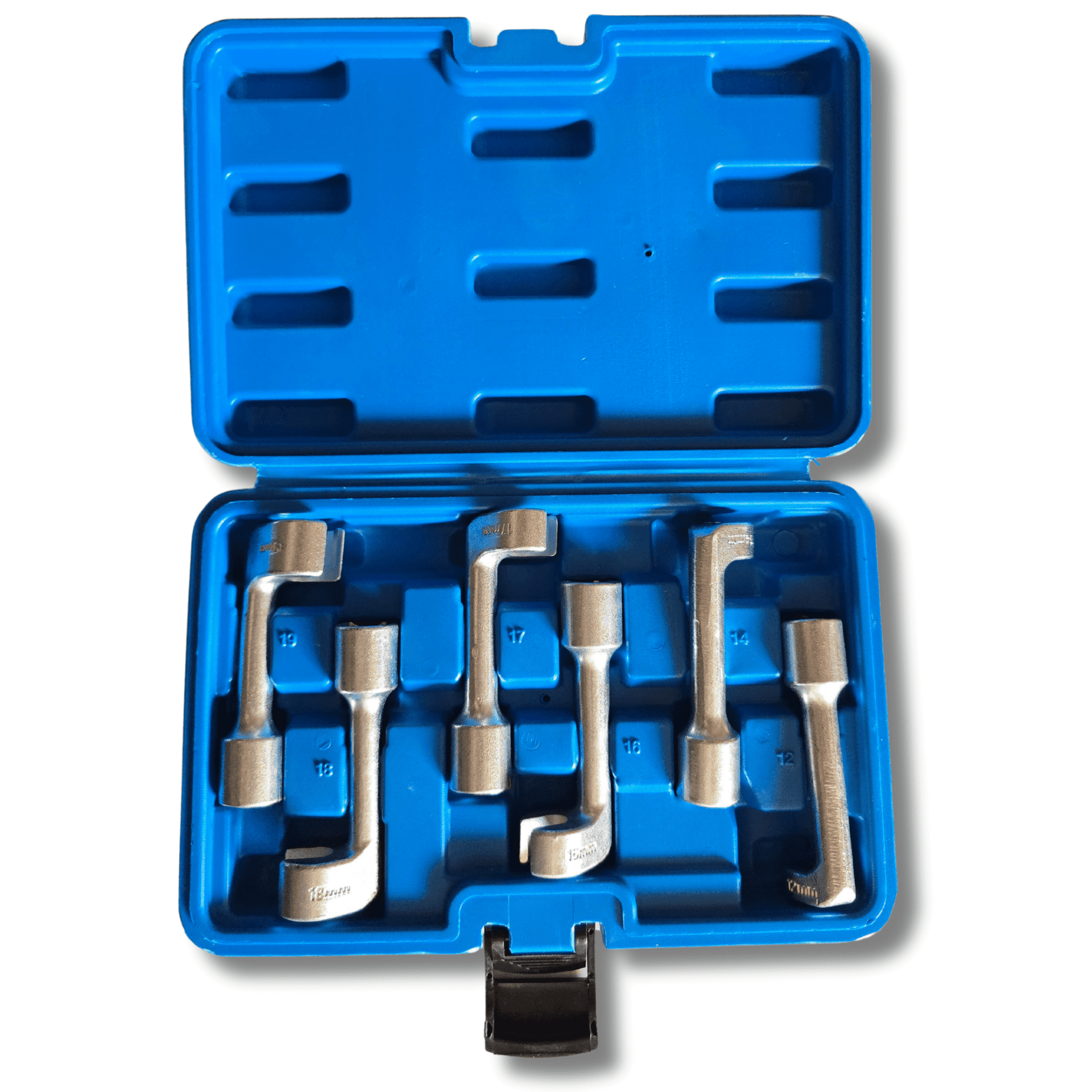 Juego de llaves abiertas 1/2" para tubos de inyección diésel y racores de combustible. Este set incluye las siguientes medidas: 12, 14, 16, 17, 18 y 19 mm. Son herramientas robustas y precisas, ideales para realizar trabajos en sistemas de combustible diésel, ofreciendo una gran durabilidad y rendimiento. Perfectas para